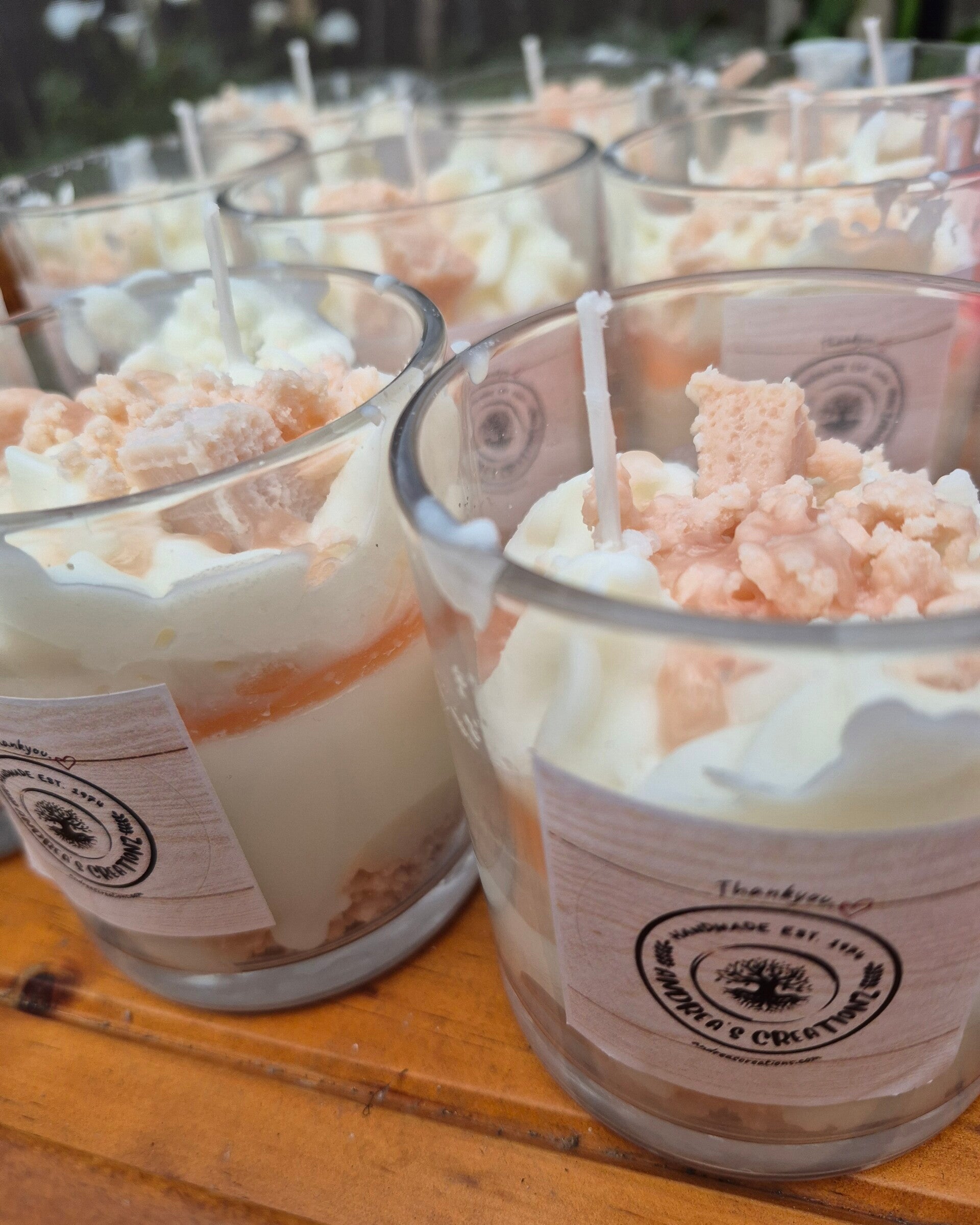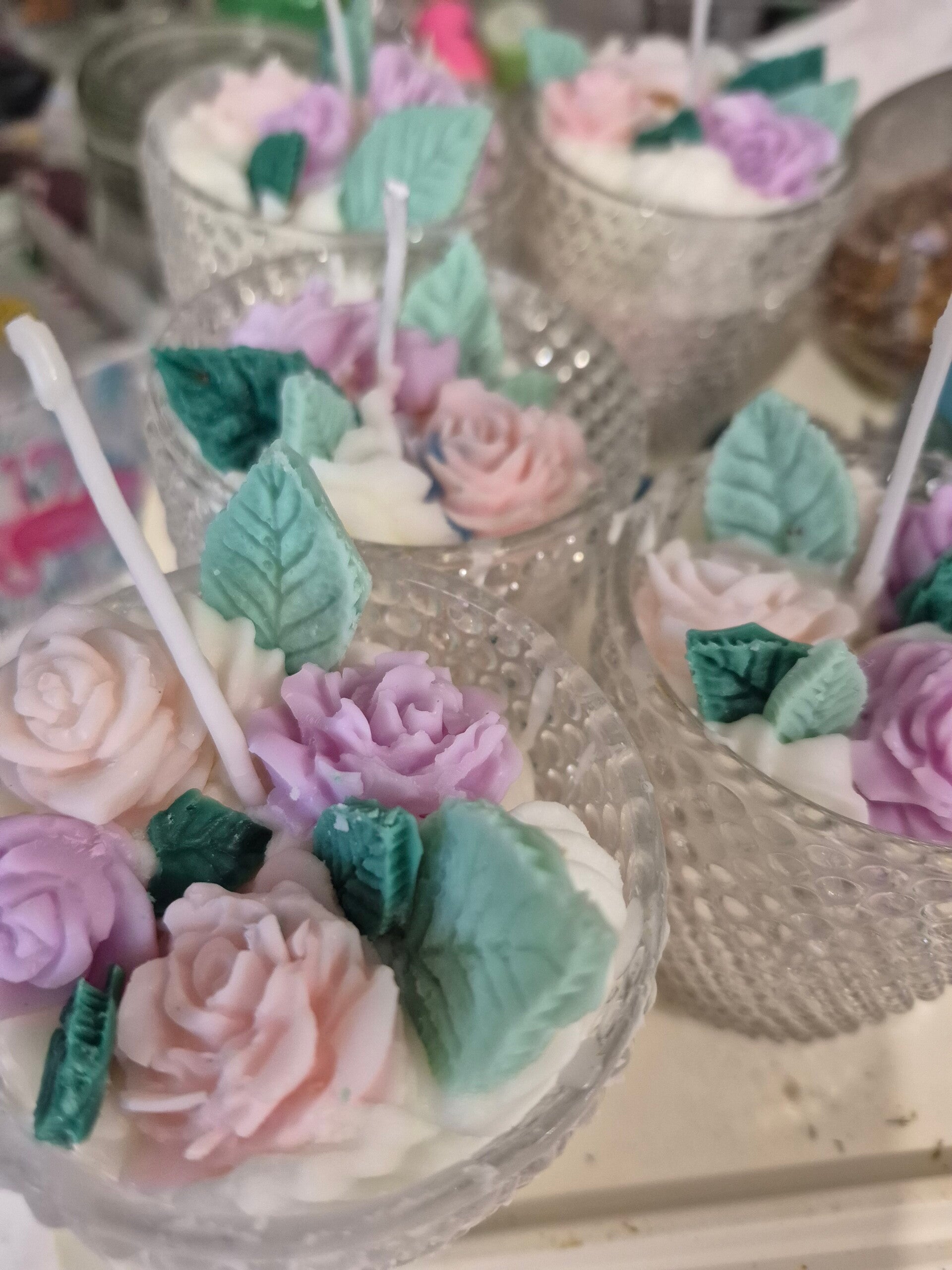 Markets are fun, here I offer an extra selection of pottery from mini urns and jugs, plant pots (featured*) and other art creations for sale, ranging from small original paintings. I sell limited high end candles featuring a rose bouquet in Ashdene teacups & saucers. I sell Milkshake and dessert glasses using candle art (featured*). I have home-made resin art pieces and some little extra lines to cater for all ages such as cute crocheted critters, earrings, necklaces (including selections of luminescents) , keyrings, & bookmarks just to name a few!